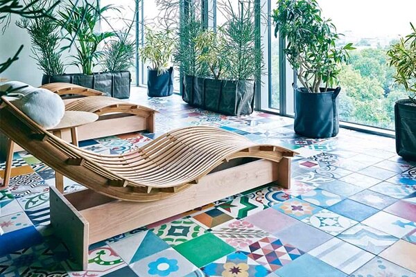 Heimat des Hotels der 25hours-Kette ist ein zehnstöckiges Büro-Hochhaus, das 1957 von den Architekten Paul Schwebes und Hans Schoszberger vis-à-vis dem Bahnhof Zoo errichtet worden war. Für das denkmalgeschützte Bikini-Hochhaus entwickelte der Berliner Designer Werner Aisslinger nicht nur Raum- und Gestaltungskonzept, Möbel und Einrichtungselemente, sondern vor allem eine ganz eigene, unverwechselbare Story. Ihr roter Faden heißt „Urban Jungle“ und verbindet den Berliner Zoo auf der einen mit dem städtischen Asphaltdschungel auf der anderen Seite des Hauses.