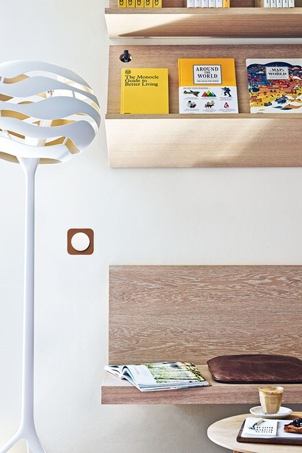 Genau wie die umgebende Hauptstadt lebt auch das Bikini-Hotel selbst vom Charme des Baustellenhaften. Die betongrau gesprenkelten Geschossdecken ließ Aisslinger ebenso unverkleidet wie zahlreiche Pfeiler und Wände aus den 50er Jahren. Das Bikini-Haus entstamme ja derselben Epoche wie Oscar Niemeyers legendäres Casa Copan in São Paulo, sagt der Designer. Diese Verwandtschaft habe er sowohl durch die alkovenartige Anordnung der Raumfunktionen wie auch durch die offenen Beton-Rippendecken betonen wollen.