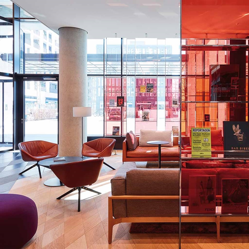 Der 35.000-Quadratmeter-Neubau zählt zu den architektonischen Highlights im jungen Quartier Schwabinger Tor. „Wir haben uns bemüht, die lokale Kultur in unser Hotelkonzept zu übersetzen“, sagt Melanie Knüwer, Planerin beim für das Interieur verantwortlichen Büro concrete. Dabei ist es den Amsterdamer Innenarchitekten gelungen, immer traditionsbewusst, aber nie schlicht traditionell aufzutreten. Stattdessen haben Knüwer und Kollegen dem Haus eine intelligente Vernetzung mit Motiven und Stilen, Künstlern und Handwerkern der bayrischen Hauptstadt eingewebt.