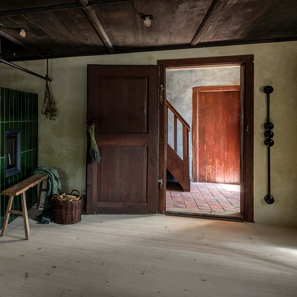 Sämtliche Bauteile wurden erhalten und nach Bedarf restauriert oder ergänzt. Im neuen Hof finden sich liebevolle Details, die noch aus den Ursprungsjahren stammen. Das kleine Fenster neben dem Hauseingang beispielsweise dürfte ein Schreiner noch zu Lebzeiten Mozarts getischlert haben. Auch die Beschläge des Tennen-Schiebetors sowie zwei Innentüren haben vermutlich mehr als zweieinhalb Jahrhunderte auf dem Buckel – und jetzt eine neue Verwendung. „Nichts ist so nachhaltig wie ein Gebäude zu nutzen, das schon seit 270 Jahren steht“, sagt Architekt Haimerl.
