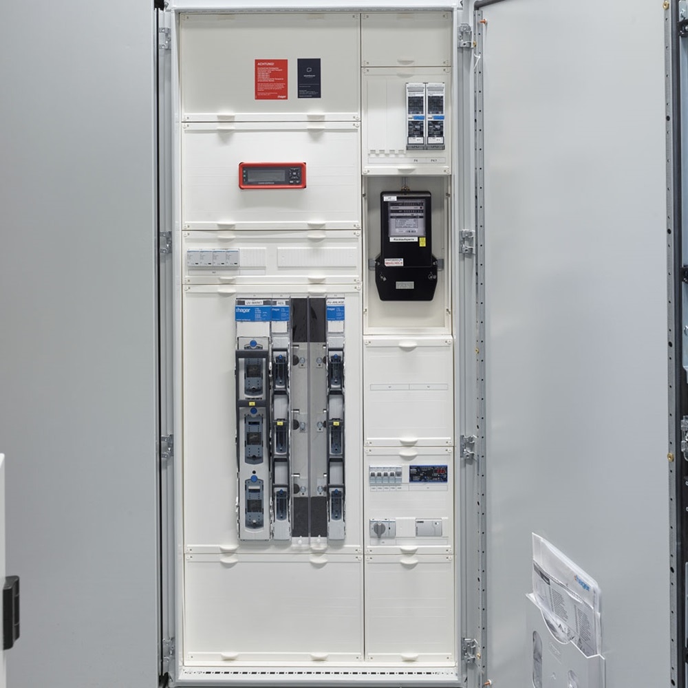 Das technische Herzstück des dm-Marktes ist in einem separaten Technikraum untergebracht: die NSHV als Anreihstandverteiler von Hager vom Typ FG26WD.
