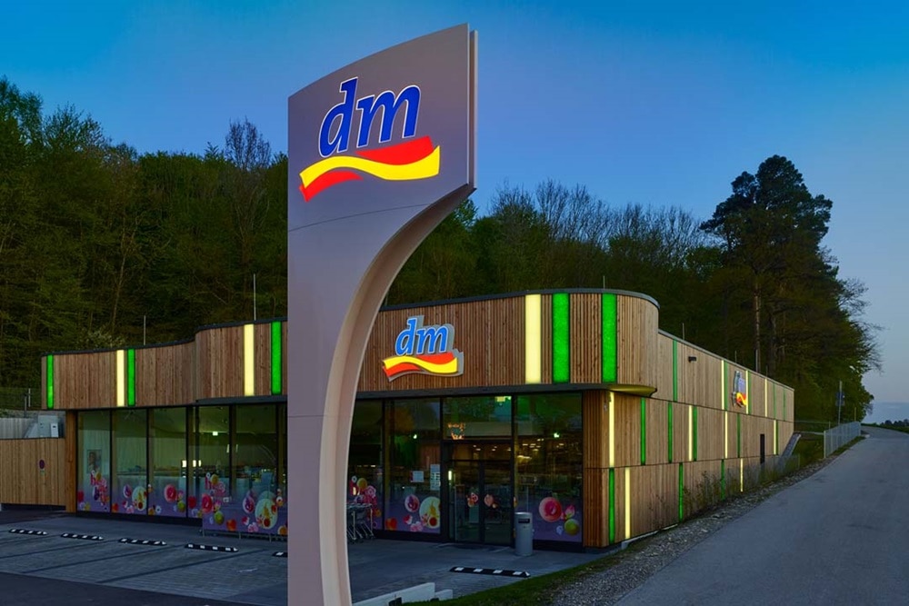 Der dm-Markt zeichnet sich durch nachhaltige Architektur und eine Bausubstanz aus regionaler Herkunft aus. Das Gebäude kommt ohne fossile Brennstoffe aus und wird über ein intelligentes Haustechnikkonzept versorgt und gesteuert. Die Komponenten dafür stammen aus einer Hand – von Hager.