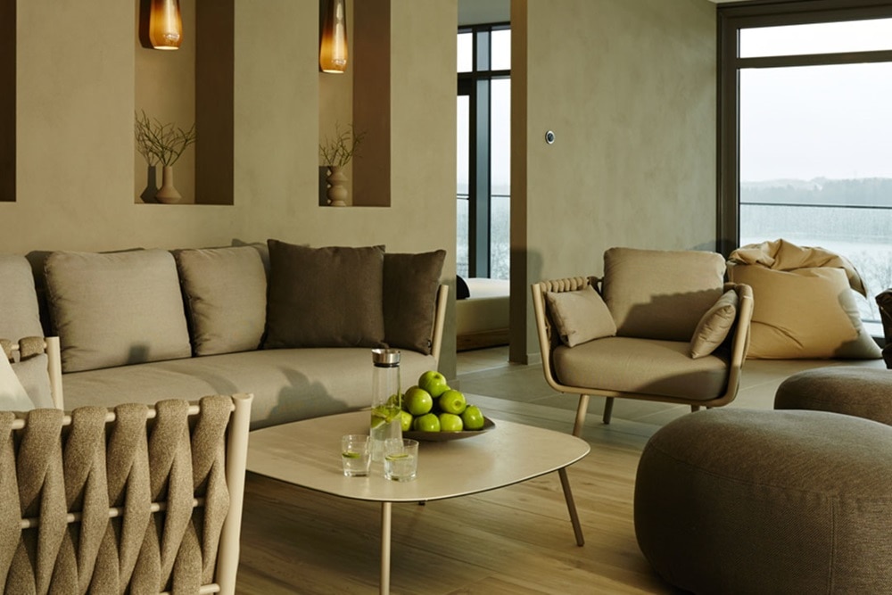 Das Hotel Seegarten am Sorpesee mit spektakulärem Sky-Spa. In traumhafter Lage direkt am Sorpesee, zwischen Promenade und Kurpark, liegt das 4-SterneHotel Seegarten. Sein Ende 2014 fertig gestellter Anbau überzeugt durch architektonische Klarheit und Transparenz. Die fast vollverglaste Fassade steht im spannenden Kontrast zur traditionellen Formensprache des benachbarten Haupthauses. Der Bauherr, TV-Koch Olaf Baumeister, und sein engagiertes Team setzen ihre Energie daran, dass sich die Gäste in Sundern wohlfühlen. Wertvolle Unterstützung dabei leisten die intelligente Steuerungstechnik der Marke Berker und Komponenten für die Energieverteilung von Hager.