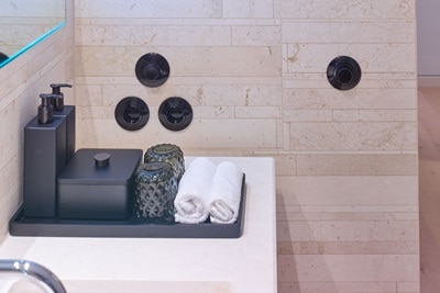 Klare „Formensprache“: Die Rahmen der Schalterserie Berker 1930 wurden in der Manufaktur von Hager individuell für das Roomers mit Funktionssymbolen bedruckt.