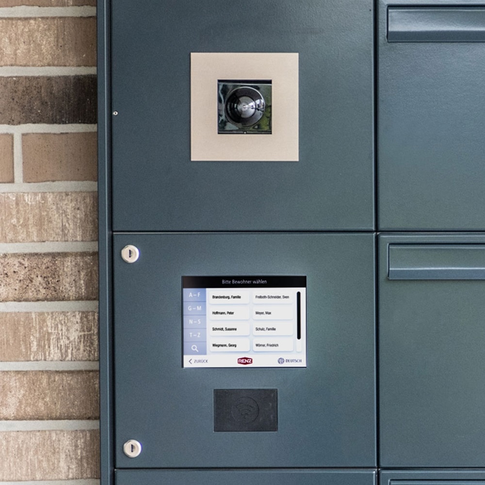 Das Elcom Paketbox Interface kombiniert die Paketbox mit der 2Draht-Türkommunikationstechnik, sodass die Innenstationen der Elcom-Türkommunikation über das Touch-Display der RENZbox angewählt werden können. Eine zusätzliche Außenstation für die Türkommunikation ist nicht notwendig. Die Bewohner steuern die Paketbox über eine GBG-eigene Mieter-App.