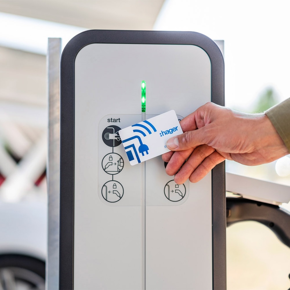 Die Freischaltung der witty share Ladestationen erfolgt mit RFID-Karten, die gleichzeitig auch als Zutrittskarten zum Firmengebäude funktionieren. Über die personalisierten Karten kann zudem der bezogene Ladestrom erfasst und abgerechnet werden.