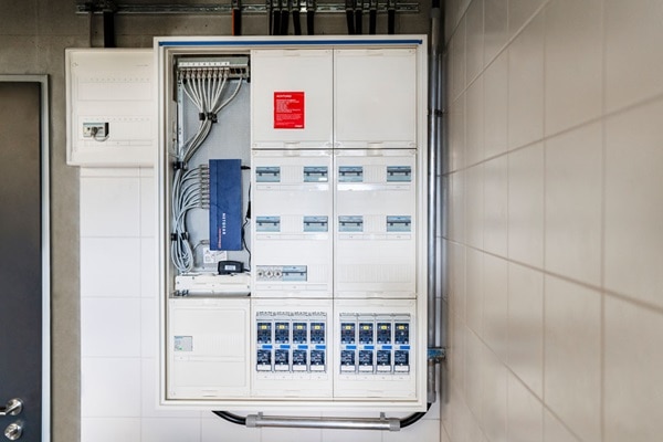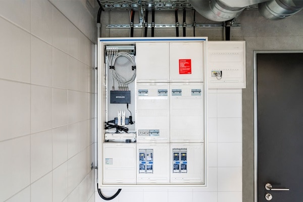 Die univers Z Energieverteilungen von Hager sind in beiden Gebäudeteilen installiert – eine von ihnen übernimmt die Energieverteilung von acht Ladestationen im Geschäftsbereich „Heizung, Lüftung, Klima“. Die zweite regelt die vier Ladestationen des Geschäftsbereichs „Elektroplanung“.