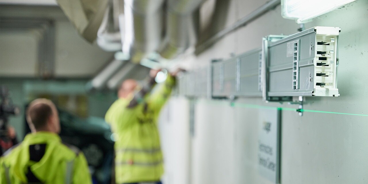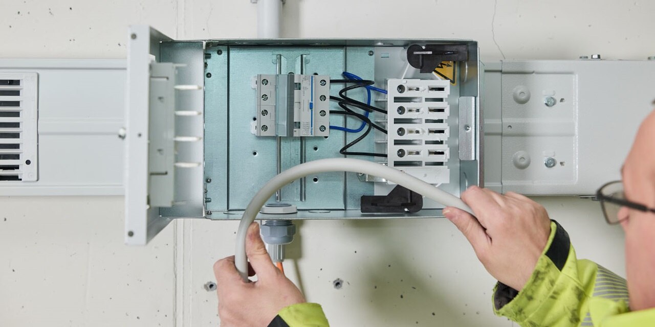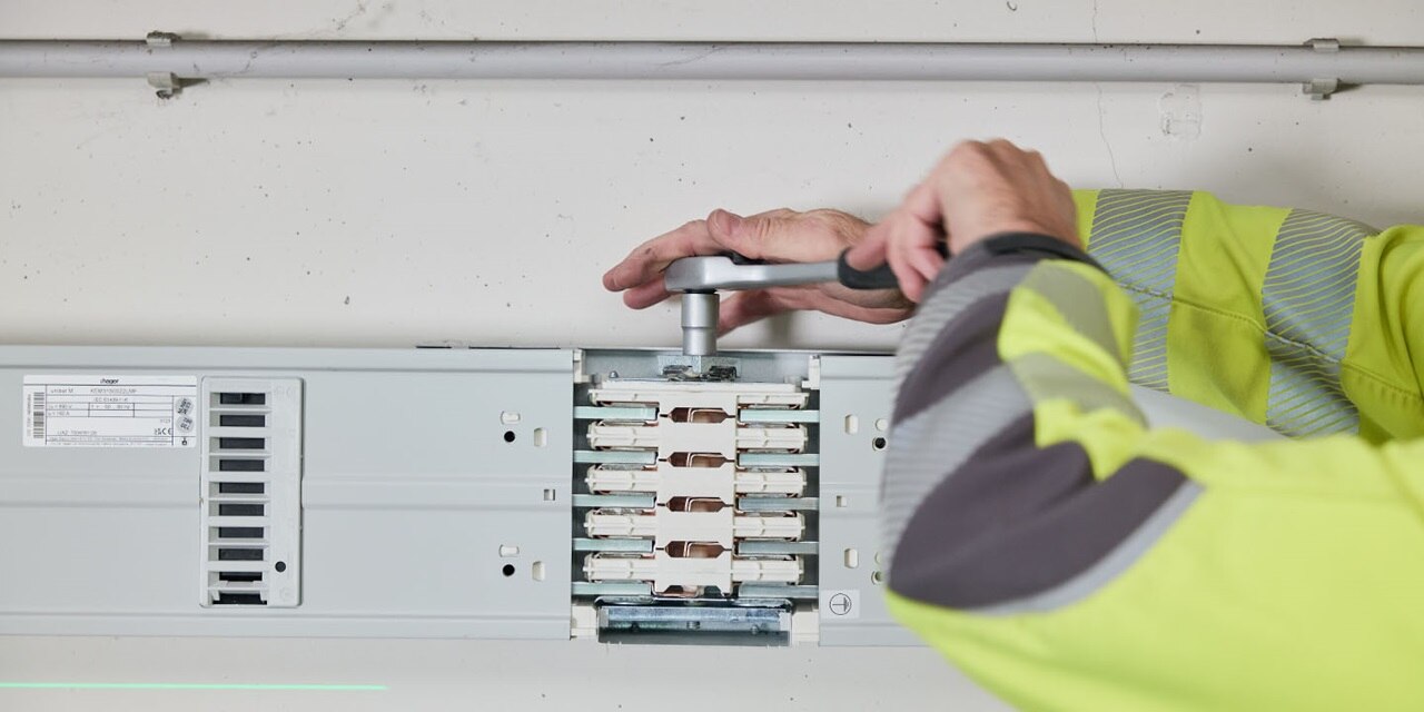 Die Energieverteilung über eine Stromschiene benötigt wenig Platz, ist stabil und einfach zu montieren und erreicht einen hohen Schutzgrad. Darüber hinaus kann sie jederzeit erweitert oder verändert werden. Sogar im laufenden Betrieb. Am Hager Standort in Hamburg wurde die Stromschiene zunächst für fünf Ladesäulen witty share ausgelegt. Sollten weitere Stellplätze oder Verbraucher hinzukommen, kann ganz flexibel nachgerüstet werden.