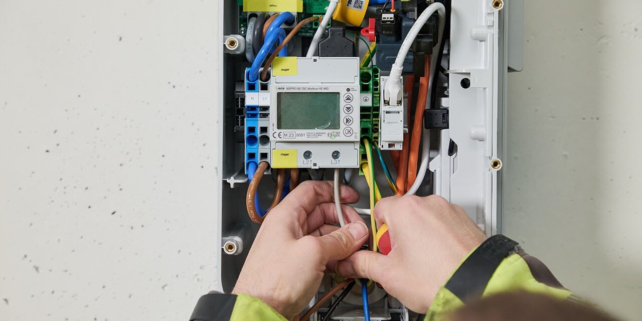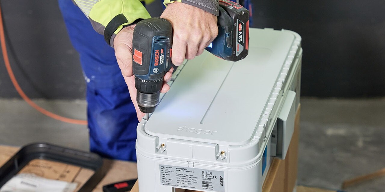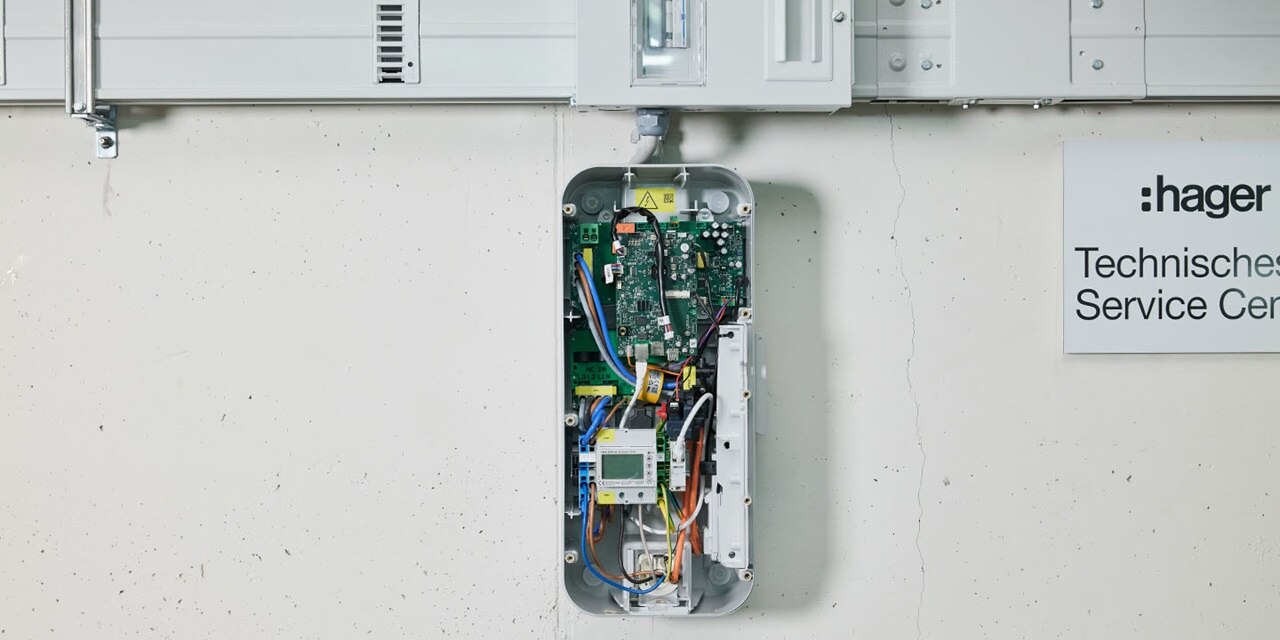 Im nördlichsten Hager Standort Deutschlands können Mitarbeiter, Kunden und andere Mieter während der Büro- oder Besuchszeiten ganz bequem ihr E-Fahrzeug laden. Dafür stehen in der Tiefgarage fünf eichrechtskonforme witty share Ladestationen zur Verfügung. Hager Mitarbeiter rechnen den Strombedarf ihrer E-Firmenfahrzeuge über eine RFID-Karte ab, externe Nutzer scannen den QR-Code an der Wallbox und loggen sich über das Backend ein. Für eine zuverlässige Energieverteilung sorgt die Stromschiene unibar M.