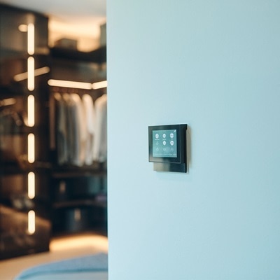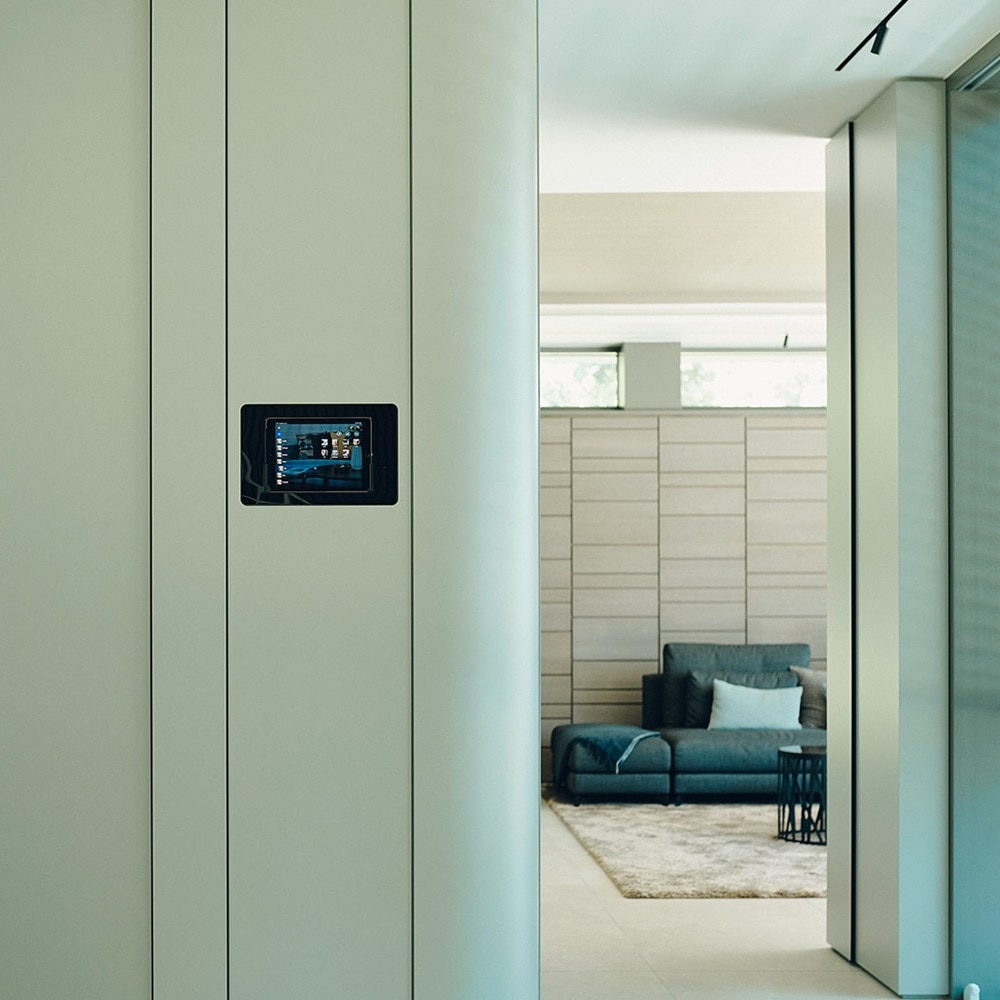 Das moderne Gebäude beinhaltet eine Vielzahl an steuerbaren und smarten Elementen und ist konzeptionell bis ins kleinste Detail durchdacht. Mit domovea bietet Hager eine dezentrale Lösung für den Zugriff auf alle Funktionen an. Die Bewohner steuern beispielsweise Licht, Jalousien oder die Raumtemperatur bequem per Smartphone, Tablet oder Smartwatch. domovea expert bietet zusätzlich eine 2-Tage-Wettervorhersage an und kann auf die aktuellen Witterungsverhältnisse reagieren und beispielsweise Jalousien an heißen Sommertagen selbständig schließen. Ob daheim oder von unterwegs: Über die domovea App können die Bewohner ihr Zuhause stets sicher und komfortabel steuern.