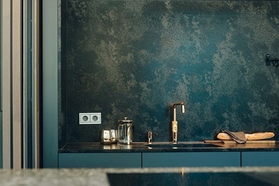 Ziel bei der kuratierten Auswahl der Inneneinrichtung war es, die Vision des Architekten fortzuführen. So fiel die Wahl auch auf das zeitlose Design des Schalterprogramms Berker K.5. Dieses besticht mit seiner rechteckigen Silhouette, seiner kantigen Kontur sowie zurückhaltendem und linearem Design und fügt sich harmonisch in das stilvolle Ambiente ein. Die Berker Schalter und Steckdosen und B.IQ Tastsensoren in eloxiertem Aluminium wirken wie ein Teil der Architektur selbst.