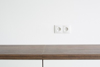 Die Berker KNX Tastsensoren B.IQ in der Alu-Variante wurden mit den passenden Steckdosen aus dem Schalterprogramm Berker B.7 Alu kombiniert.