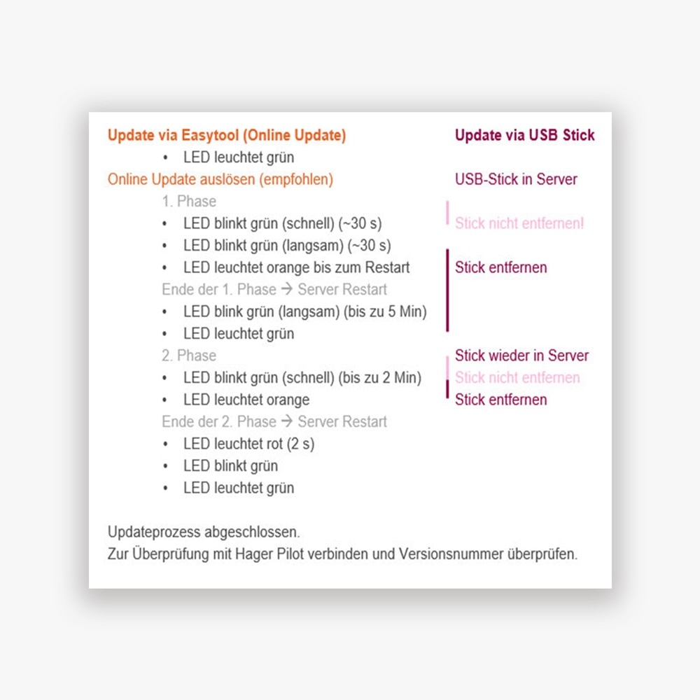 Achten Sie insbesondere während des manuellen Update-Prozesses auf das beschriebene Blinkverhalten der LED auf der Vorderseite des easy Konfigurationsservers TJA665.