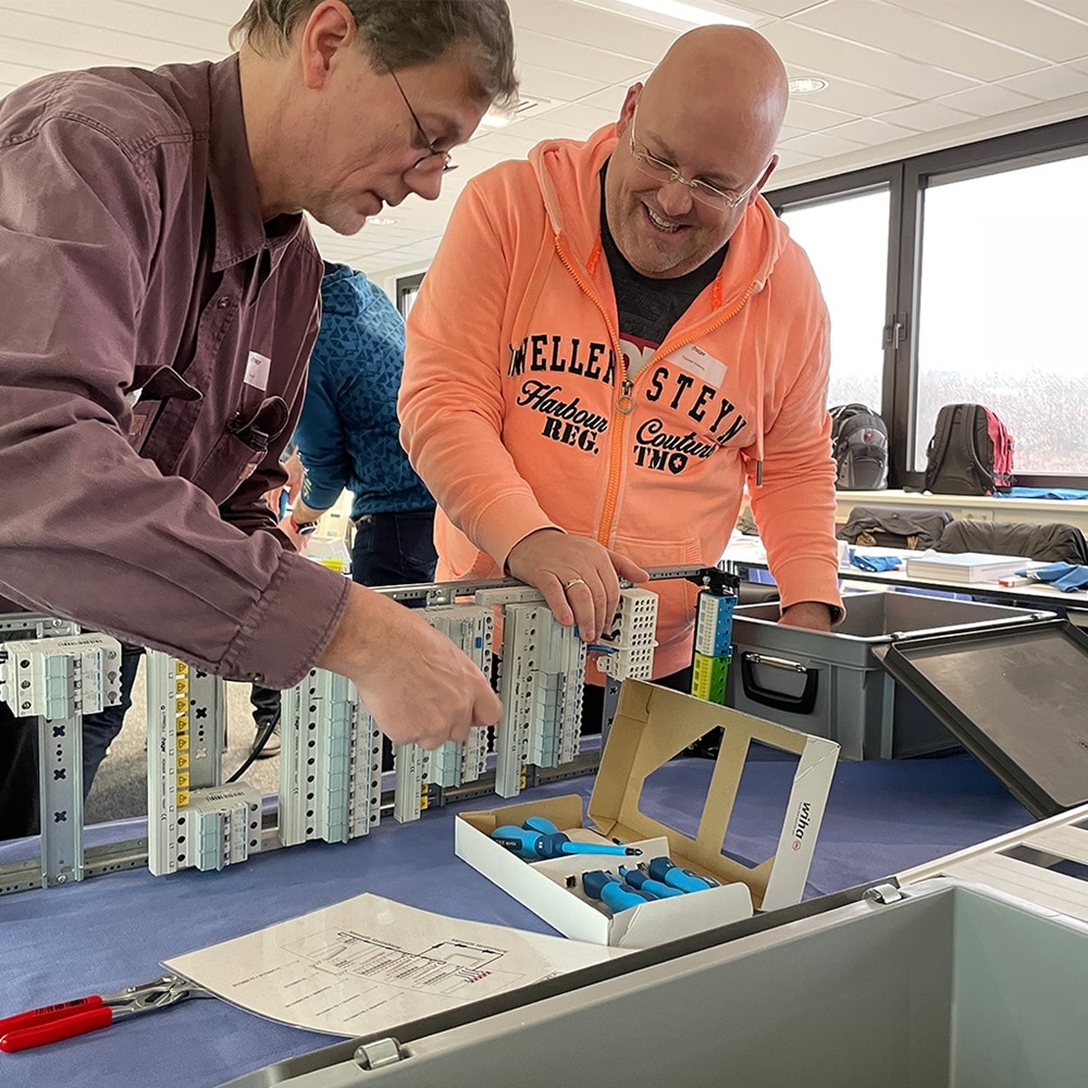 Auszubildende schrauben an echten Praxis-Stationen, an denen die Challenges aus dem beruflichen Alltag gemeistert werden müssen. Unterstützt werden sie hierbei von fachkundigen Experten, sodass auch Fragen beantwortet werden können.